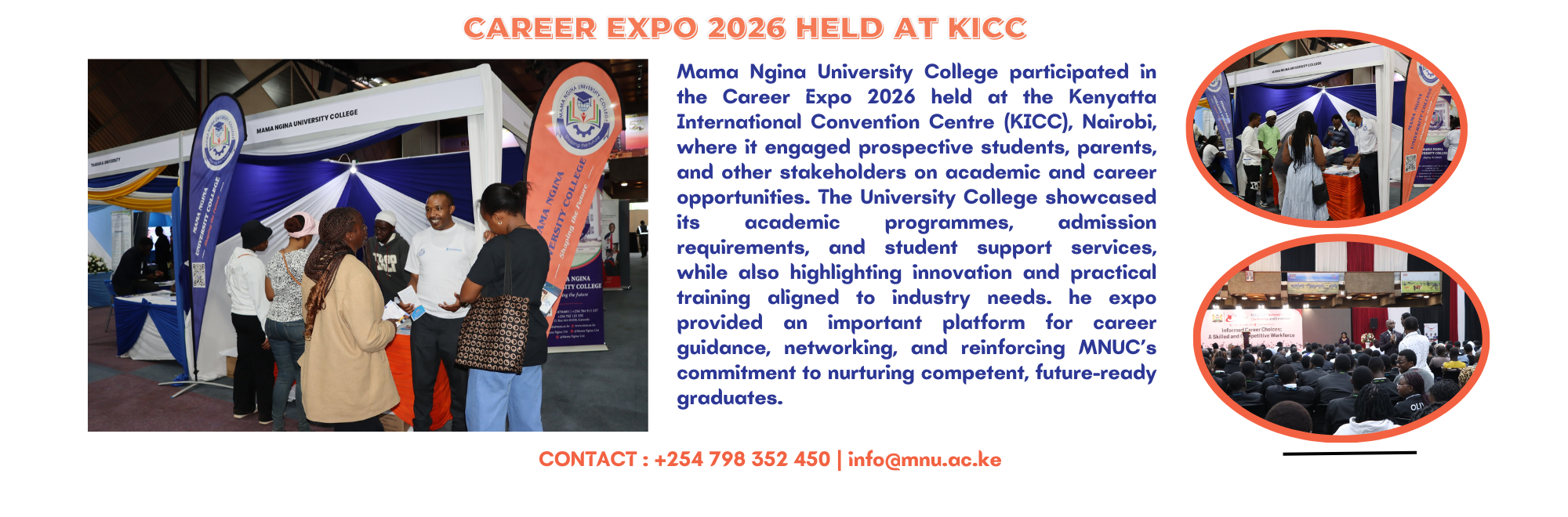 Mama Ngina University College participated in the Career Expo 2026 held at the Kenyatta International Convention Centre (KICC), Nairobi, where it engaged prospective students, parents, and other stakeholders on academic and career opportunities. The University [...]